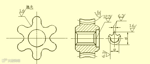 中心孔的工作表面,键槽的工作表面,倒角,圆角的表面粗糙度代号可以简化标注。
