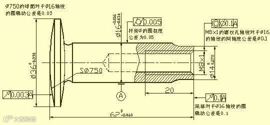 气门阀杆图中形位公差附近的文字仅为说明,实际图样中无需重复标注。