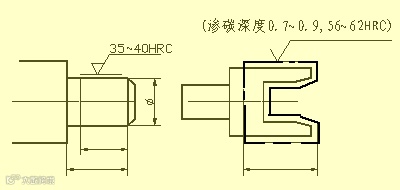当零件需局部热处理或镀(涂)覆时,用粗点画线标出范围及尺寸,或直接在表面粗糙度符号横线上注明要求。
