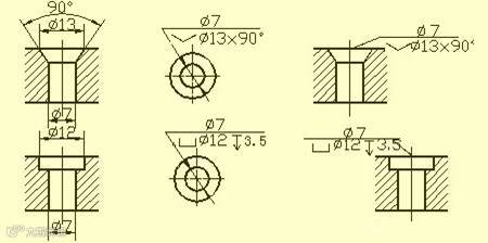 在机械制图中,对于不同类型的孔,其尺寸标注方法有所不同。以下是几种常见孔的尺寸标注方式: