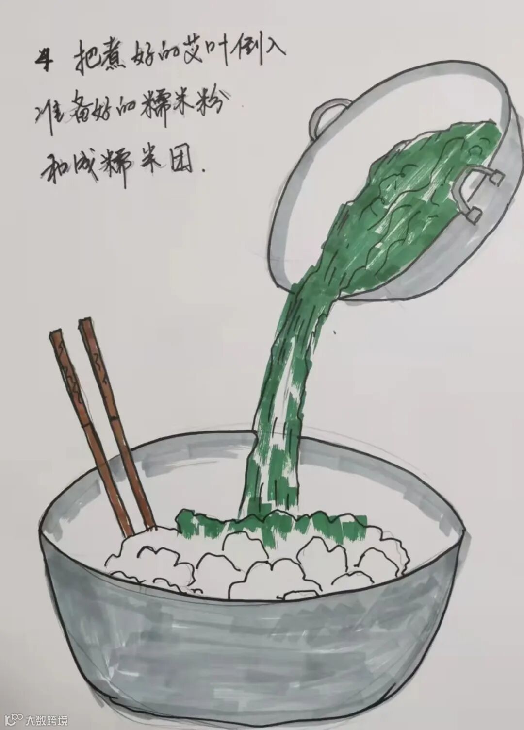 学生手绘青团制作步骤