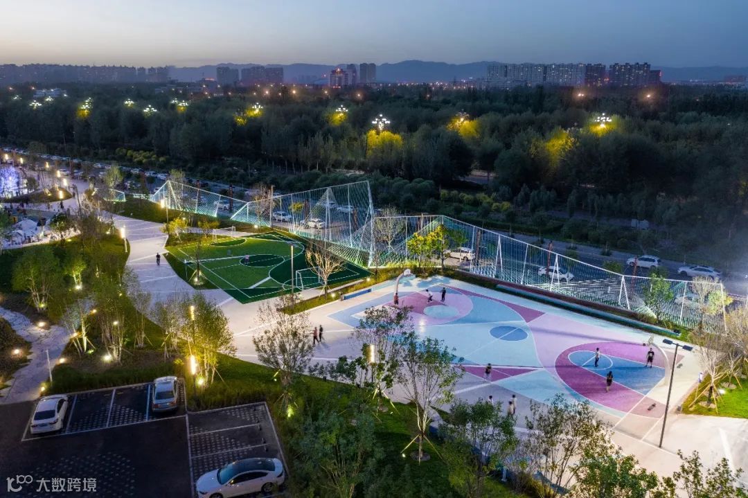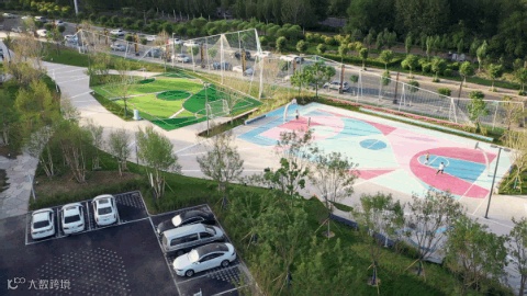 停车场作为项目的暖身区域,明确的流线指引着人们进入场地,在汽车通行的路上画上跑道线条,停车的同时增加了趣味。