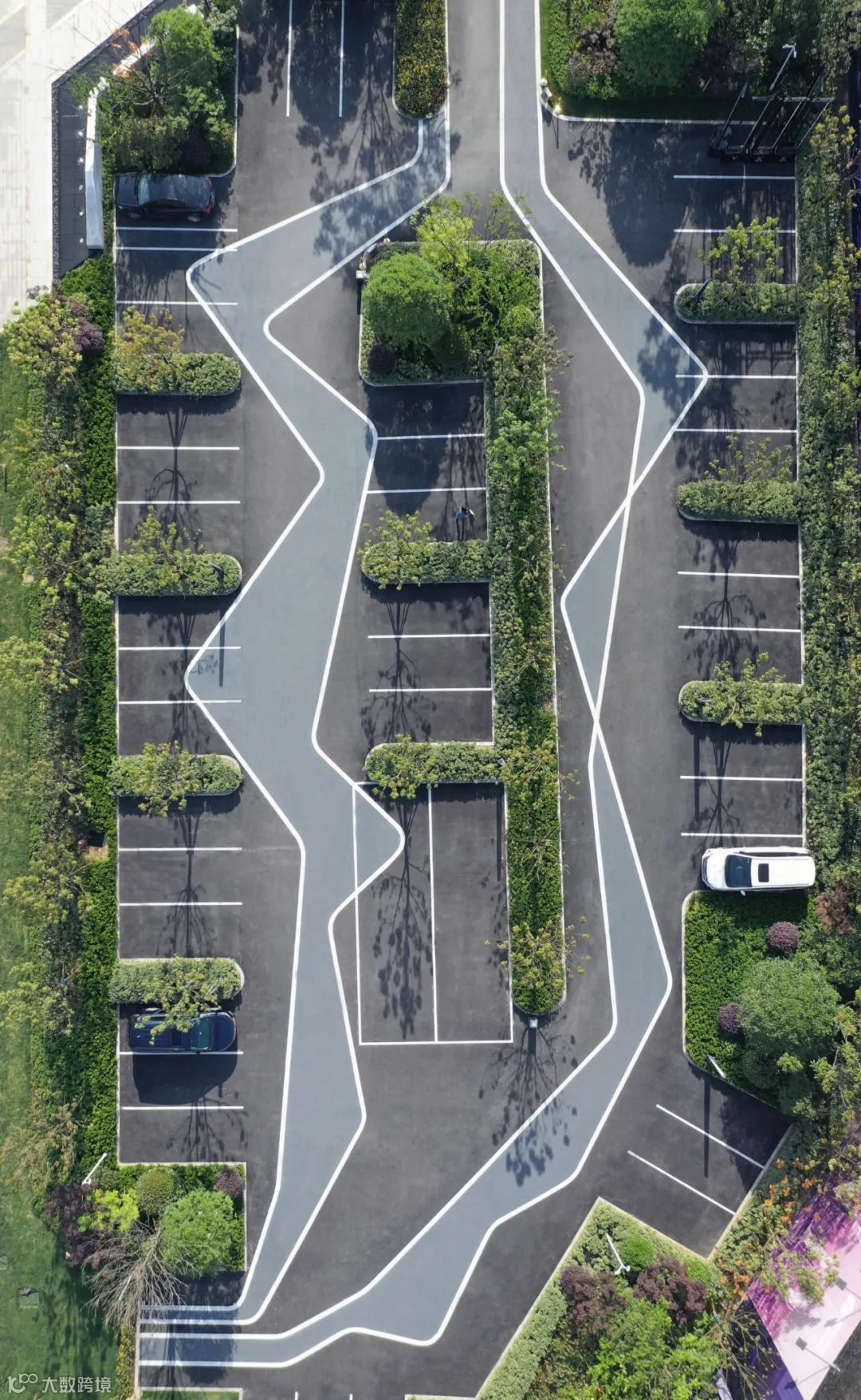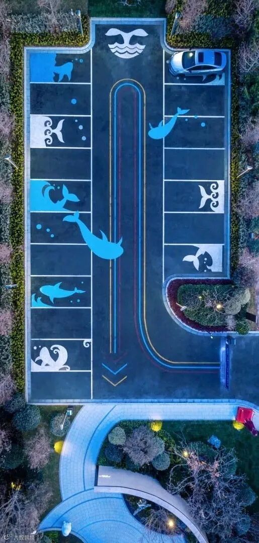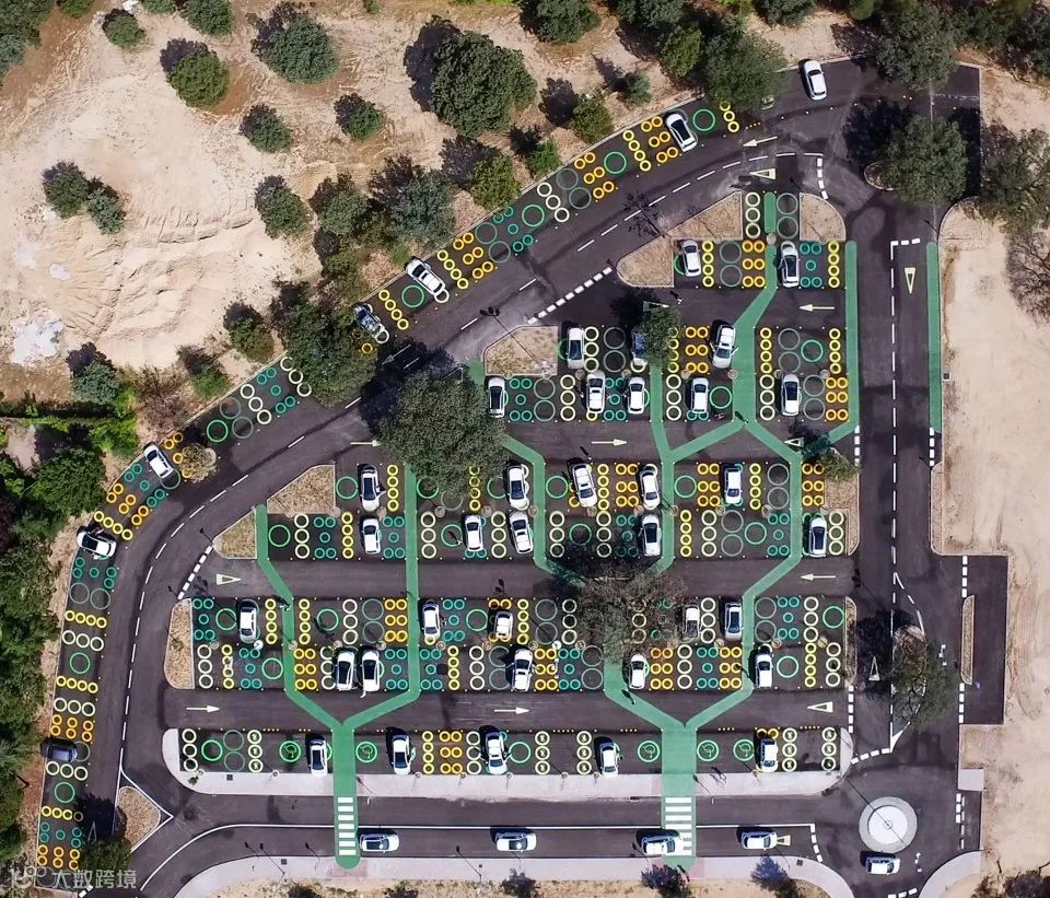 ▼圆圈和汽车让停车场看上去更加有趣