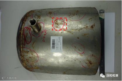 现提供太阳能热水器水箱内胆截取样一件,材质为304不锈钢。据反映,该水箱内胆制造工艺为:滚圆-焊接-接头焊接,正常使用时,内胆水压约为4~6kgf,水温最高为95℃。该批内胆使用约1~2年后陆续发现内胆渗漏,失效比例约为5%,现要求分析其渗漏原因。图1所示为试样外表面宏观形貌,红圈处为渗漏部位,可见外表面存在明显锈蚀,左侧焊接部位锈蚀较严重,右侧未焊接部位存在点状锈蚀,且点蚀聚集处与渗漏部位吻合。图2所示为内表面宏观形貌,存在轻微点状锈蚀,且点蚀聚集处(图中红圈所示)与渗漏部位基本一致。