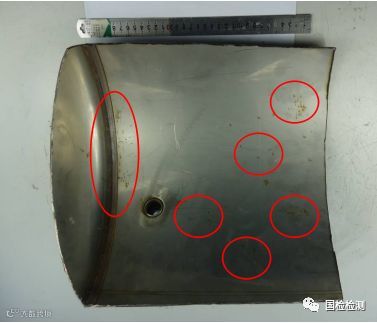 图11所示为截取试样外壁形貌,可见明显的点蚀凹坑,深度约为0.03mm。