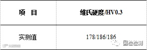 对截取试样纵截面进行维氏硬度检测,结果如表1所示,无异常。