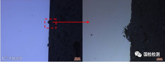 图7 截取试样纵向抛光态形貌 图8 裂纹微观形态