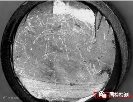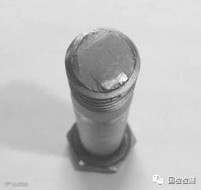 断裂螺栓的断面宏观形貌,可见断口平整,无明显腐蚀产物,断面位于螺纹牙底,可见明显的疲劳弧线,如图11-130。