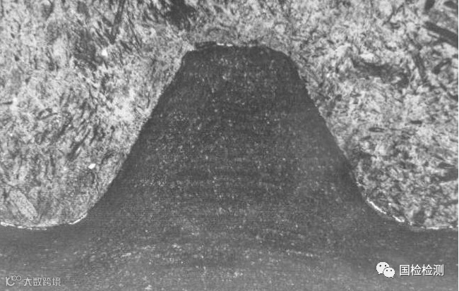 图11-137所示为送检螺栓断口附近螺纹部位的金相组织,可见螺纹部位碳势正常,牙顶无明显缺陷;牙底流线完整,无明显缺陷。