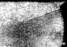 图10-8粗细晶粒交界面上的裂纹 ×50