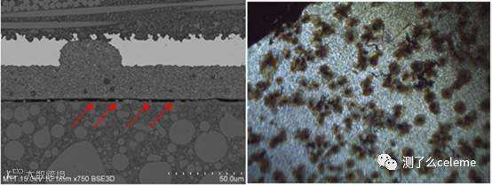 图9 左IC分层失效 、右涂层样品界面点腐蚀失效