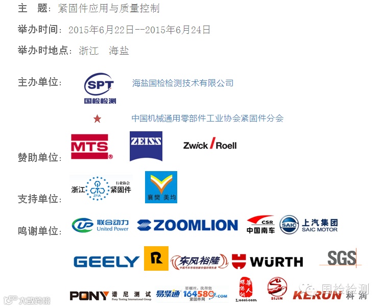 第二届紧固件应用与质量控制高峰论坛着眼推进紧固件产业链对新材料、新工艺、新技术、新装备的运用,集结了航空航天、汽车生产、电力等应用领域代表;贸易采购平台、专业媒体、等中介机构代表;检验检测机构、院校、研究所等技术支持机构代表;生产设备、检验设备等配套企业代表,共同研讨紧固件应用与质量控制的关键环节,剖析行业发展趋势,充分汇聚紧固件业内产业链企业专家、学者集体智慧,分享新技术、新理念和新趋势等解决方案,促进技术进步、共同推进行业发展!