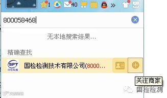 在查找框中输入“国检检测”,性别、年龄、在线等条件不限,即可快速成功添加;