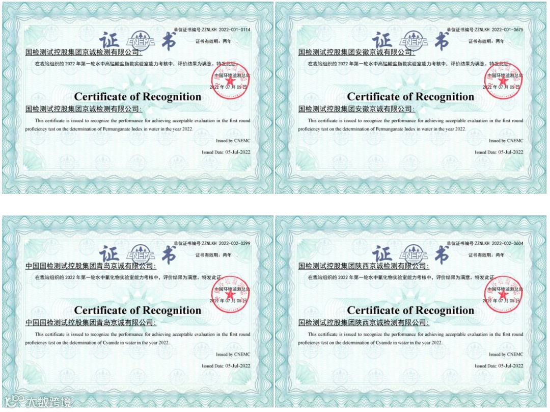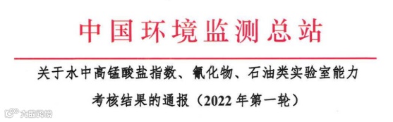 近日,中国环境监测总站发布了“关于水中高锰酸盐指数、氰化物、石油类实验室能力考核结果的通报(2022年第一轮)”,国检京诚集团广州、青岛、安徽、陕西、云南、湖南实验室通过相应的考核并取得“满意”结果。