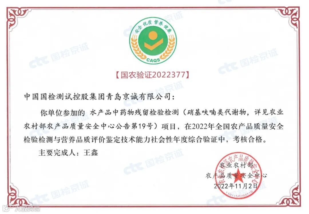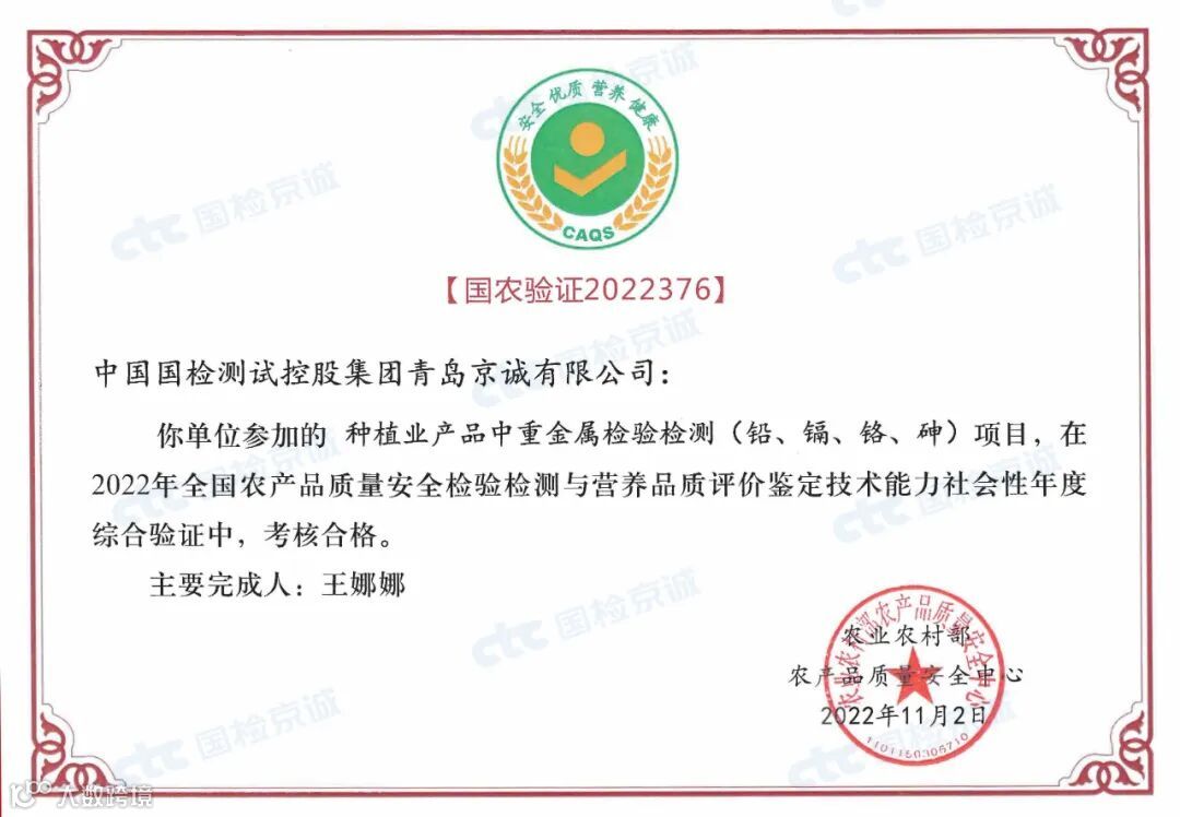 满意!国检京诚集团通过2022年长三角地区检验检测机构能力验证