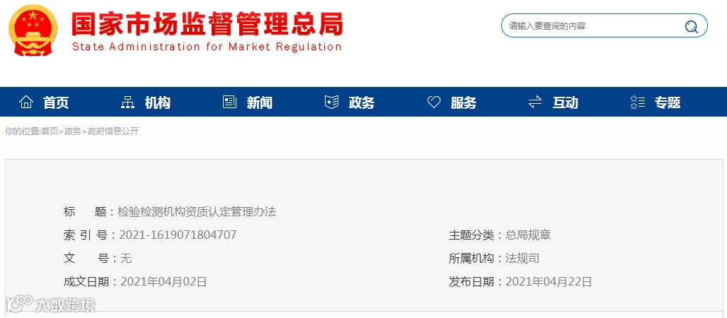 新版《检验检测机构资质认定管理办法》全文发布