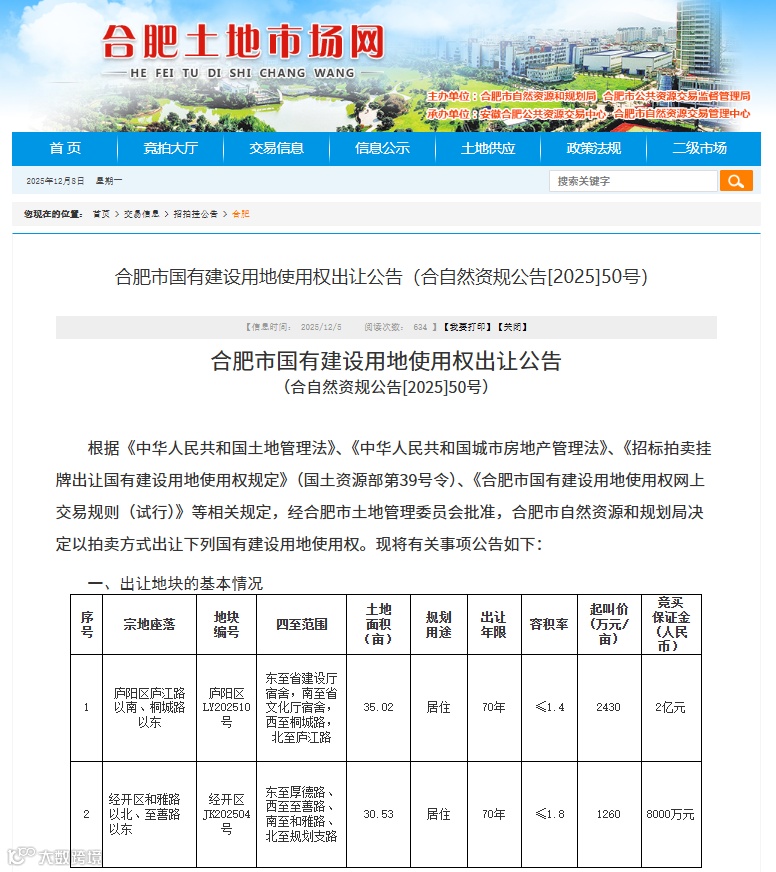 合肥市国有建设用地使用权出让公告(合自然资规公告[2025]50号)的发布,为2025年合肥土地市场收官战定下基调。此次土拍最引人注目的当属庐阳区“南门小学+42中”双本部地块,以26036元/平方米的起拍楼面价创下年度纪录。