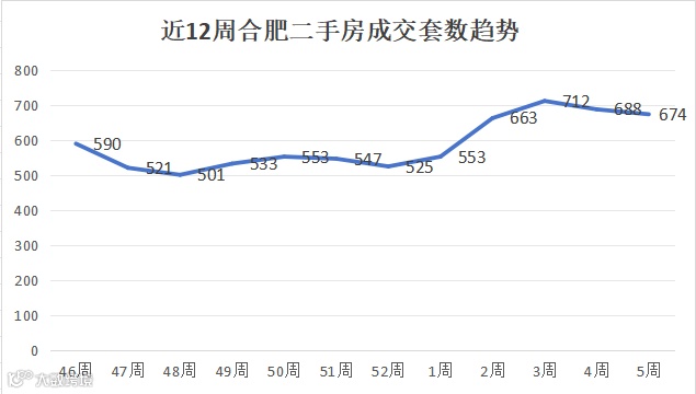 再来看看二手房市场,上周合肥二手房成交了674套房源,环比上周二手房成交量下降2%,已经连续12周成交量保持在500套房源以上,而且整体来看,合肥二手房成交量呈上涨趋势,而且从近期的成交量来看,二手房活跃度较高。