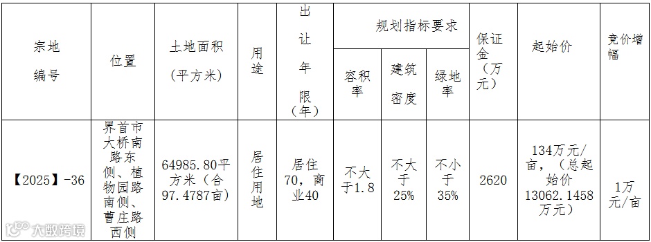 六、本次国有建设用地使用权拍卖会定于2025年11月11日16时在界首市公共资源交易中心举办。