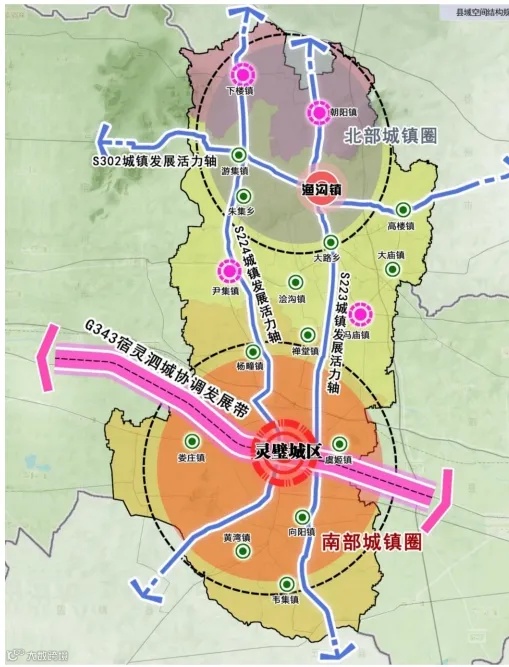 灵璧县正处于多重战略机遇叠加的发展黄金期。根据《灵璧县国土空间总体规划(2021—2035年)》,县域将构建“一主一副四心、一带三轴双圈”的城镇空间格局,突出灵璧城区作为县域主中心的核心地位,并加快渔沟镇作为副中心建设,推动冯庙、尹集、下楼、朝阳等四镇成为区域发展重要支点。
