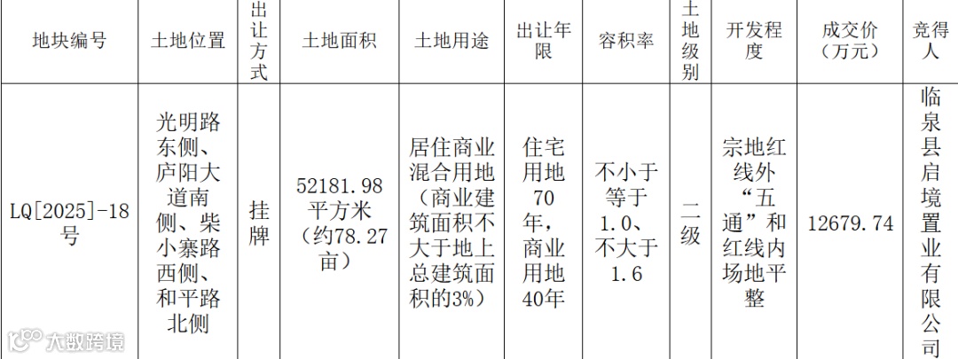 临泉县启境置业有限公司竞得一宗住宅用地,共78亩