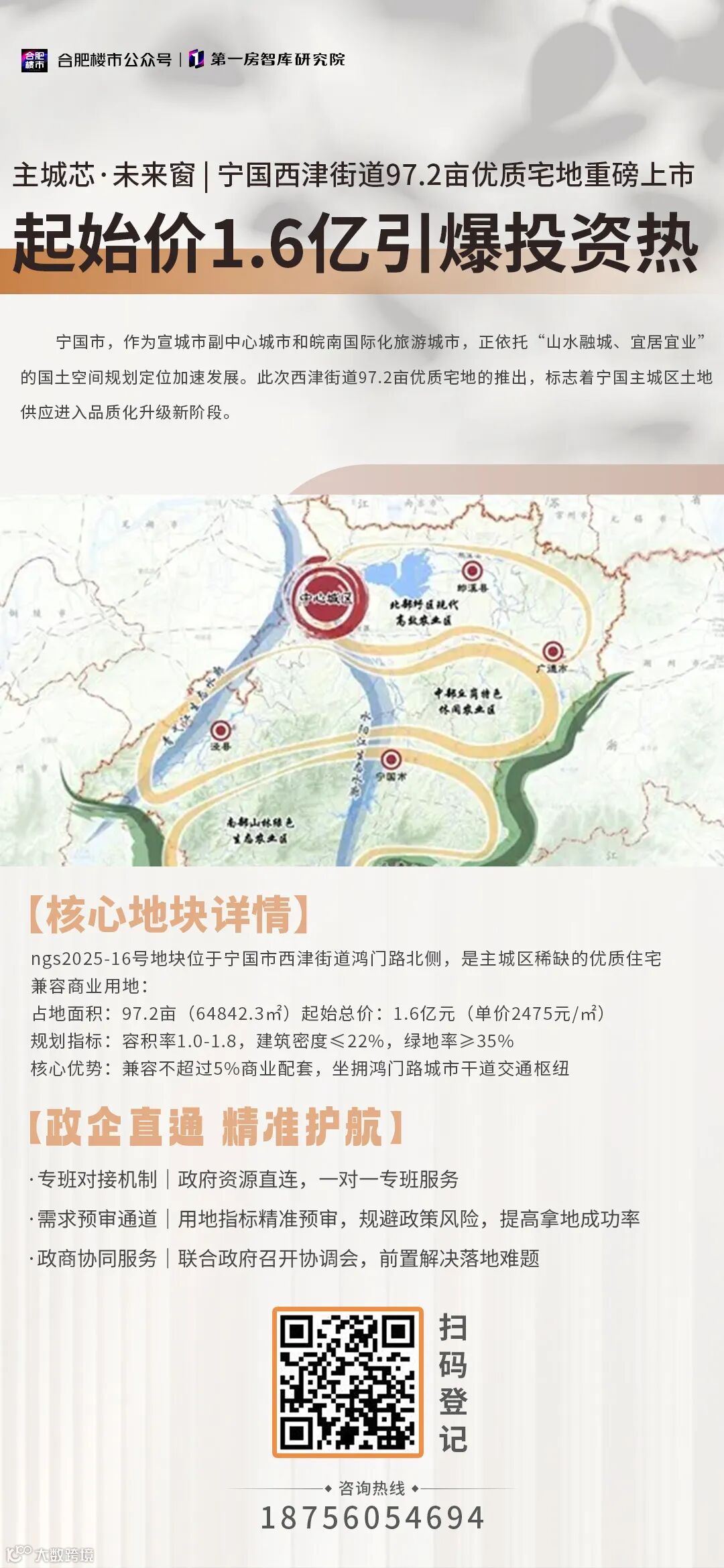 2025年11月25日,宁国市自然资源和规划局发布一则国有建设用地使用权公开出让公告(宁交易国告字[2025]11号),正式拉开了年末土地市场的大幕。此次公告中,一宗位于西津街道鸿门路北侧的城镇住宅兼容商业用地尤为引人注目,地块面积达64842.3平方米(约97.2亩),起始价高达2475元/平方米,竞买保证金3210万元,这一优质地块的推出无疑将为宁国市房地产市场注入新的活力。