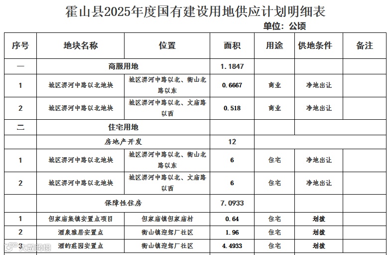住宅用地19.0933公顷的供应数据背后,藏着霍山楼市的深层变局。在看似有限的蛋糕中,保障房用地独占7.0933公顷,占比高达37%——政府用真金白银的土地资源,为住房保障体系筑起坚实底座。