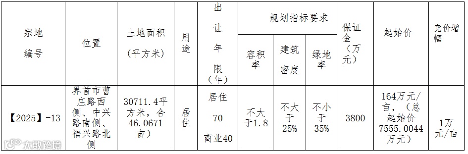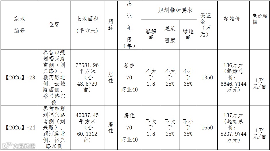 六、本次国有建设用地使用权拍卖会定于2025年10月10日16时在界首市公共资源交易中心举办。
