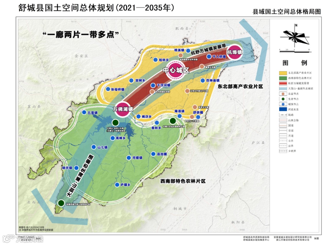 舒城县构建了 “一主二副,一带二环” 的城镇空间格局。以中心城区为县域主中心,强化其发展核心地位,完善政务区功能,推动舒东区、南溪区建设,改善老城区居住环境,打造县域行政、文化科技和商务商贸中心。