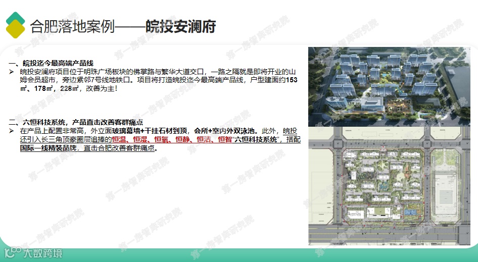 在产品上配置非常高,外立面玻璃幕墙+干挂石材到顶,会所+室内外双泳池。此外,皖投还引入长三角顶豪圈层追捧的恒温、恒湿、恒氧、恒静、恒洁、恒智“六恒科技系统”,搭配国际一线精装品牌,直击合肥改善客群痛点。