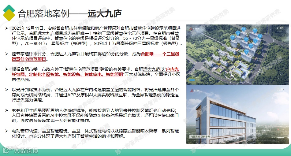 经专家组评审评分,合肥远大九庐项目最终获得超90分的分数,成为合肥唯一一个三星级智慧住宅示范项目。