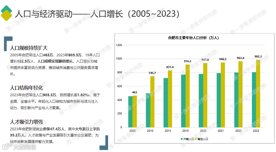2005年,合肥常住人口仅463万,而到2023年,这一数字已攀升至985.3万,几乎翻了一番。年轻化的人口结构与蓬勃的经济活力,为楼市注入了源源不断的动力。