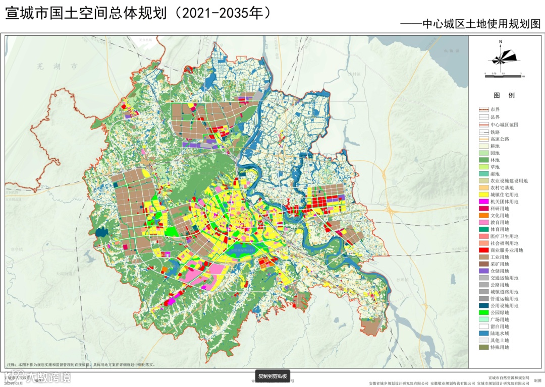 中心城区作为城市的核心,承担着引领市域全面发展的重任。这里构建了 “一主四片、双源双廊” 的空间结构,中部主城与东、南、西、北四个片区协同发展。每个片区都有明确的功能定位,东部片区依托宣城现代服务业产业园区,重点发展金融服务、电子商务等新兴产业,打造 “产城融合” 的现代化城市新区;