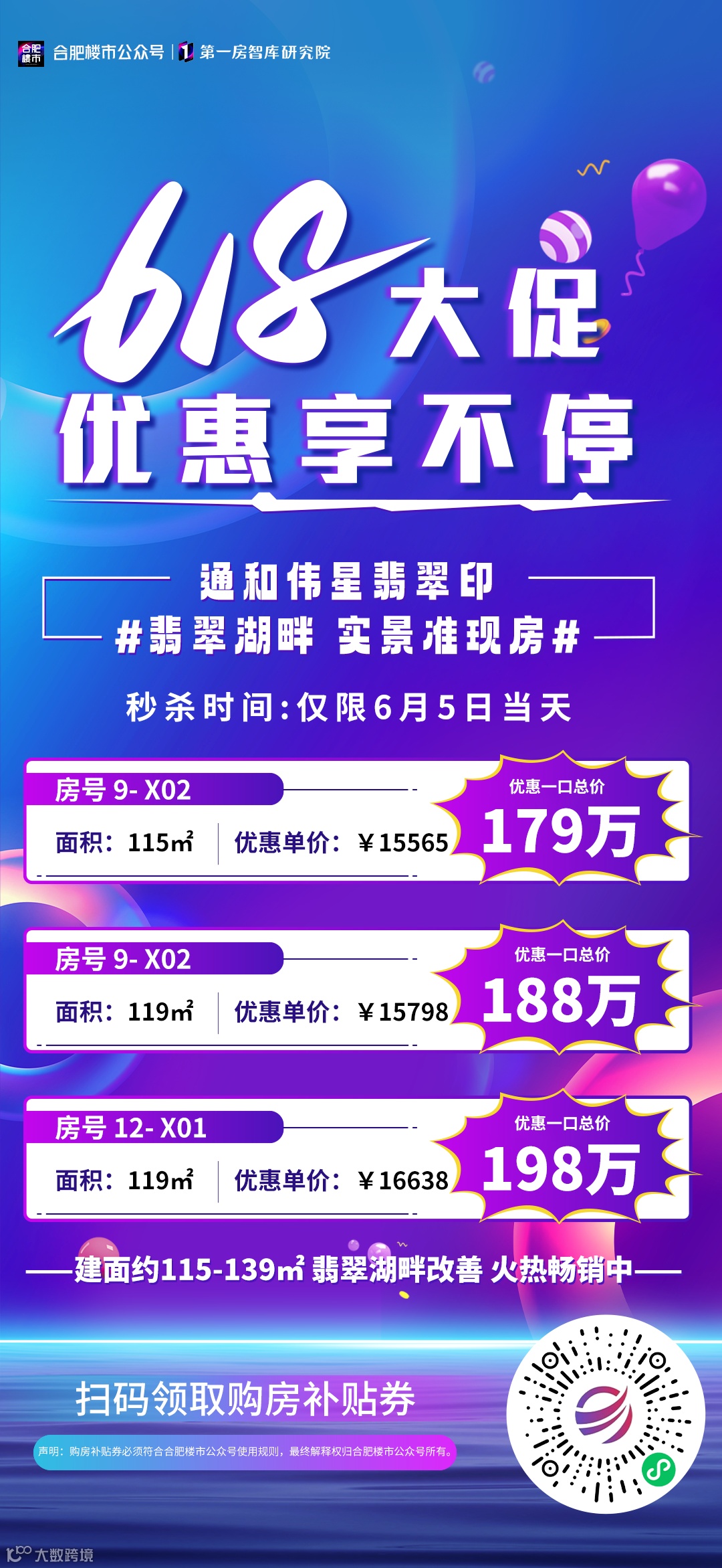 合肥楼市618大促优惠享不停,本周推出9个楼盘42套特价房,最高优惠55万,最高购房补贴6万,限时秒杀。