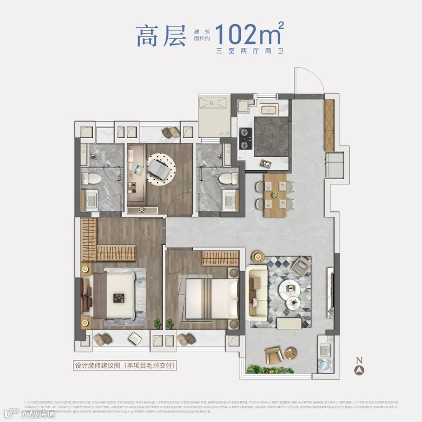 在户型方面,高层住宅建筑面积约102-123㎡,适合三口之家或刚需购房者;小高层住宅建筑面积约97-123㎡,户型设计合理,空间利用率高;低密度多层住宅建筑面积约120-143㎡,宽敞舒适,适合改善型购房者。其中,102㎡的高层户型和128㎡的洋房户型更是备受推崇,南北通透、全明采光的设计让居住更加舒适。