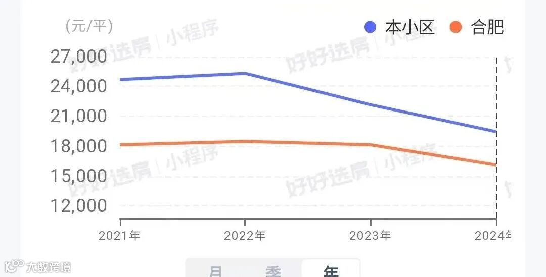 根据小区近些年的二手房成交价格来看,从2021年开始,无论是挂牌量还是成交量都在逐年上升,成交价方面,从2022年开始到2024年迎来三连跌。截止至2025年1月底,该小区二手房成交已经跌破2万元/㎡。高铁都市花园东苑开盘时的价格在1.6万/㎡左右,对比当时的开盘价,抛去持有成本和银行利息,目前该小区还有2000元/㎡的溢价,保值率在125%左右。