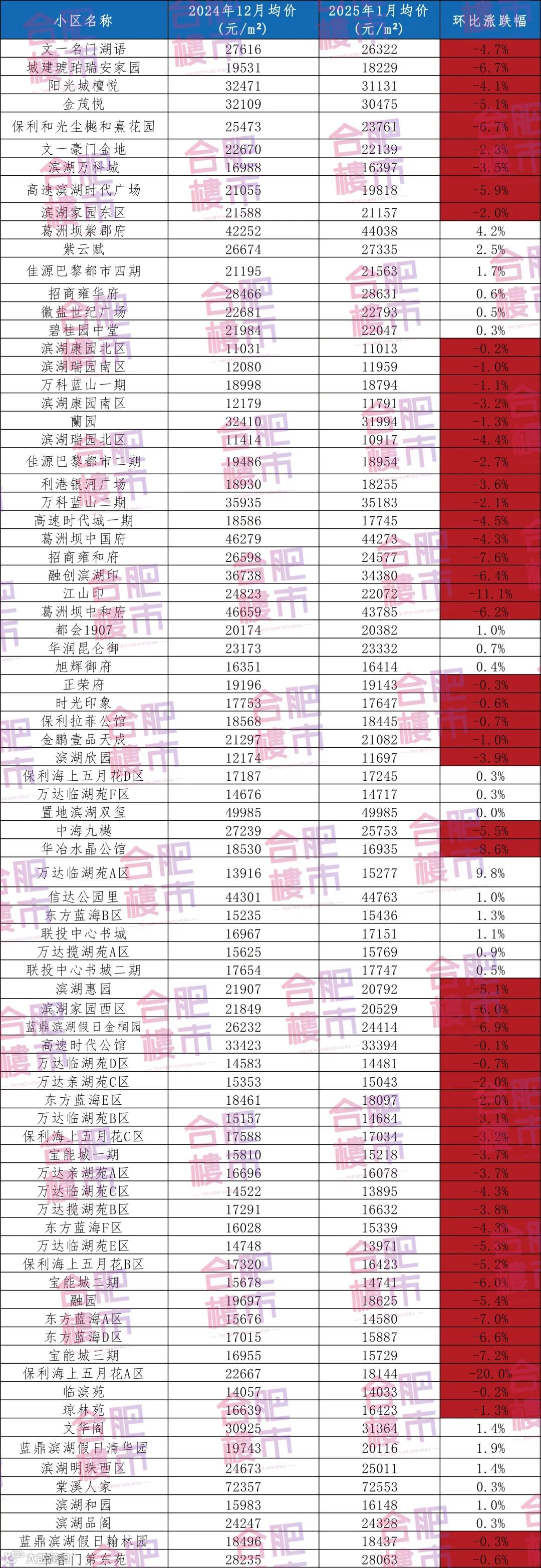 针对滨湖区的热门小区来看,总共统计了81个二手房小区,1月环比下降的有57个,环比上涨的有24个。