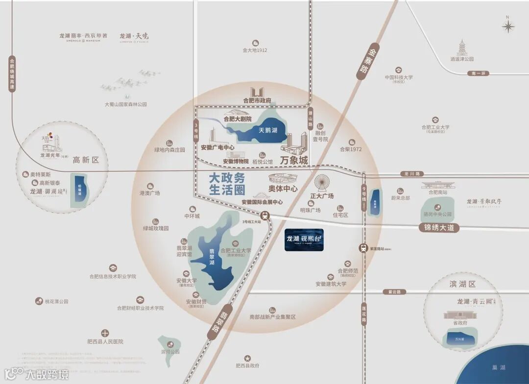 龙湖砚熙台,是龙湖在合肥继龙湖·御湖境、龙湖·青云阙之后,落子的第三座高端系产品。同时1.8的容积率,是片区内少有的低密度洋房产品。该片区依托 “两湖科创圈”,集生态宜居、科技创新、高端商业于一体。