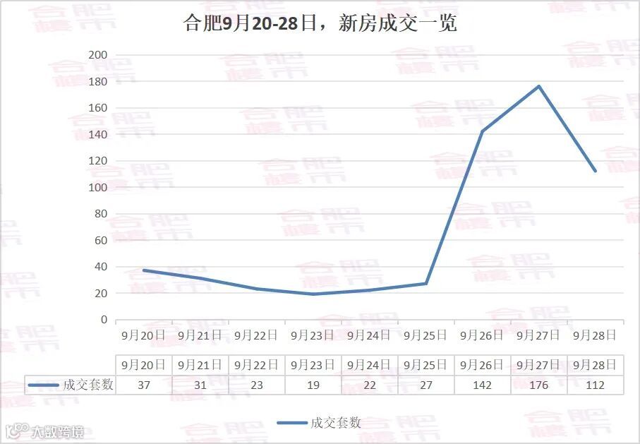 2、新房市场上,926会议后,成交量得到了集中式的爆发。926之前,合肥新房的日成交普遍都在二三十套,等到926及以后 ,单日成交量一下干到100多套,暴涨了好几倍。