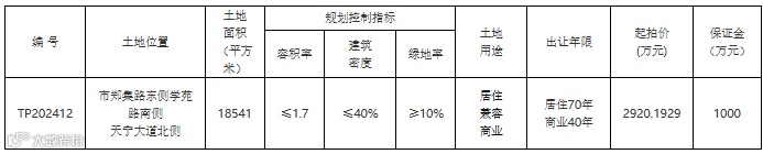 七、该地块为天长市广陵街道田庄社区槽坊居民组三产用地,其他设置条件按居民组出具的《槽坊居民组三产用地招标须知》执行。