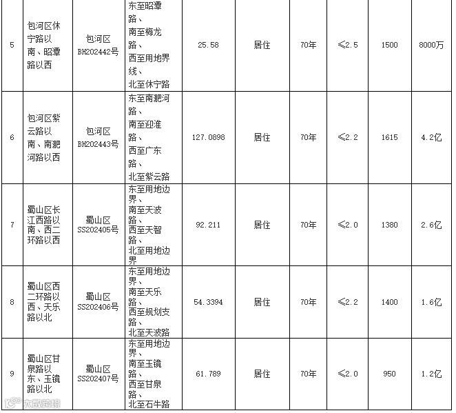 合肥暂定12月19日拍卖9宗涉宅用地,总面积651亩