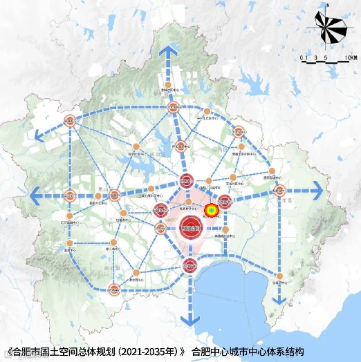 合肥十四五规划提出以骆岗公园为核,天鹅湖中心、老城中心、东部新中心与滨湖中心四大一级中心为引的“一区四级”中心体系结构规划。其中,主城淝河作为老城中心推动下衍生的新中心。