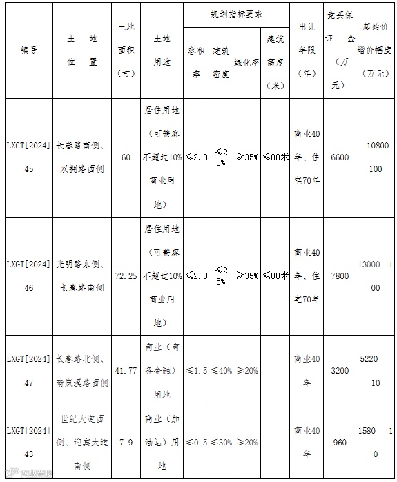 (四)LXGT[2024]45号、LXGT[2024]46号地块竞得人如为同一家公司,各项技术经济指标允许进行综合平衡。