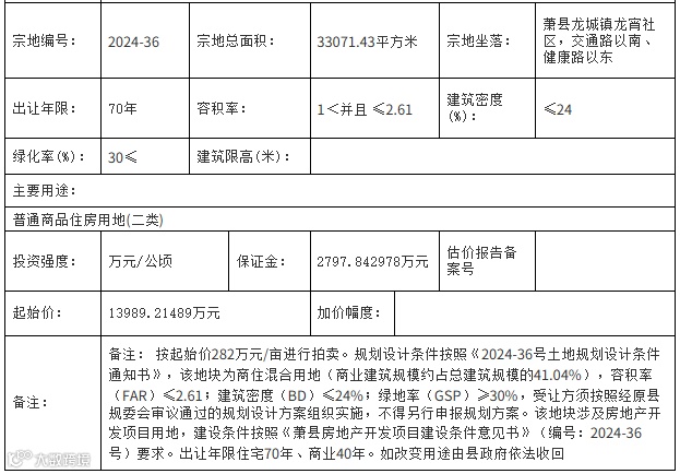 七、 本次国有土地使用权拍卖活动定于2024年09月27日10时00分。