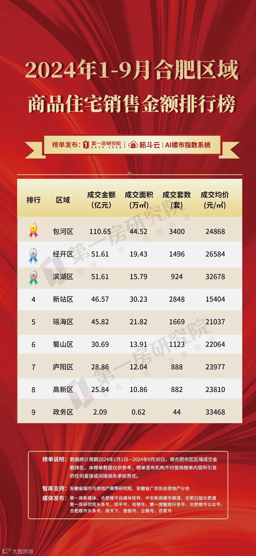 2024年1-9月,全国房地产在政策层面持续宽松,尤其926政治局会议后,市场沸腾,然而从市场表现来看,前三季度依然处于调整期,尤其第三季度市场持续走低,而9月底给市场来了一针强针剂。具体到合肥市场表现如何,下面将从合肥九区新房成交量价、房企以及楼盘和安徽土地市场情况详细解说。