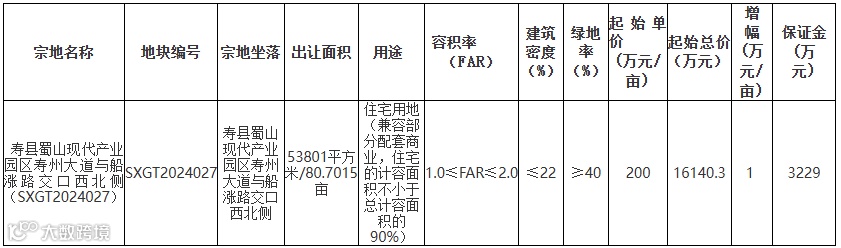 寿县暂定7月29日拍卖1宗涉宅用地,面积80亩