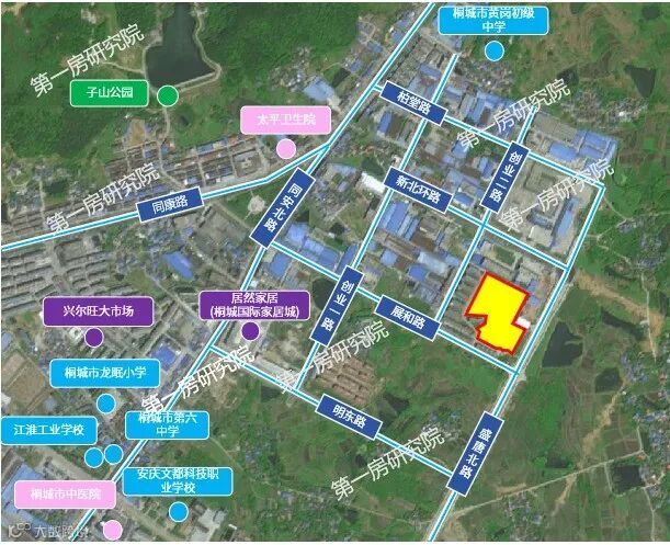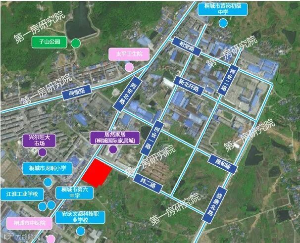 宗地位于同安北路东侧,纬二路南侧,面积49.84亩,R≤2.5。周边有桐城市第六中学、桐城市龙眠小学、桐城市黄岗初级中学、太平卫生院、桐城市中医院、兴尔旺大市场、居然家居(桐城国际家居城)。地块是商业用地,能够填补板块内大型商业的空缺,同时增强板块价值。
