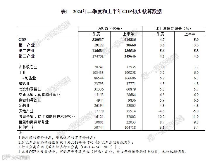 上半年中国国内生产总值(GDP)61.7万亿元,同比增长5.0%,其中二季度增长4.7%,增速比一季度有所回落。运行总体平稳、稳中有进,新动能加快成长,高质量发展取得新进展。