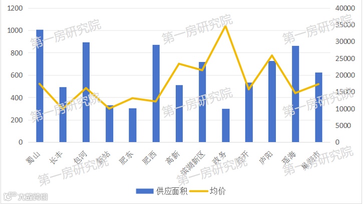 分区县来看,蜀山区挂牌面积最高,政务区的挂牌均价最高。