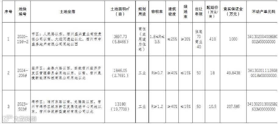 宿州挂出1宗涉宅用地,挂牌截止时间8月7日